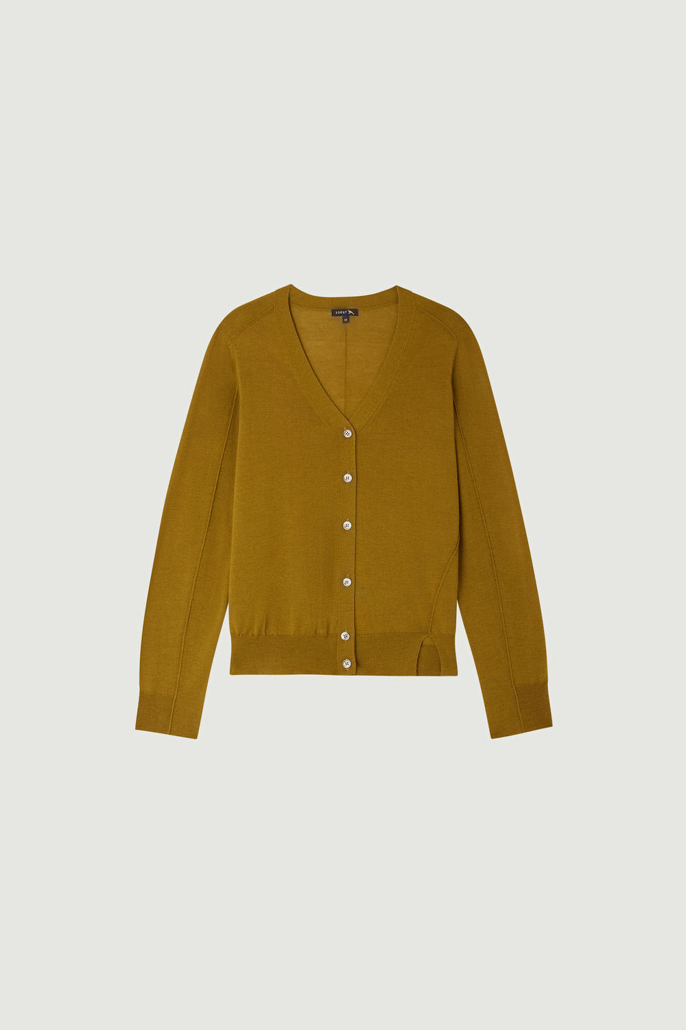 ALYSSA is a relaxed cardigan with a wide V-neckline. It is knitted in extra-fine merino wool to be worn directly on the skin. Asymmetry at the hem, decreases, ribbed trims and inside-out seams are details that add charm to this deceptively classic cardigan.